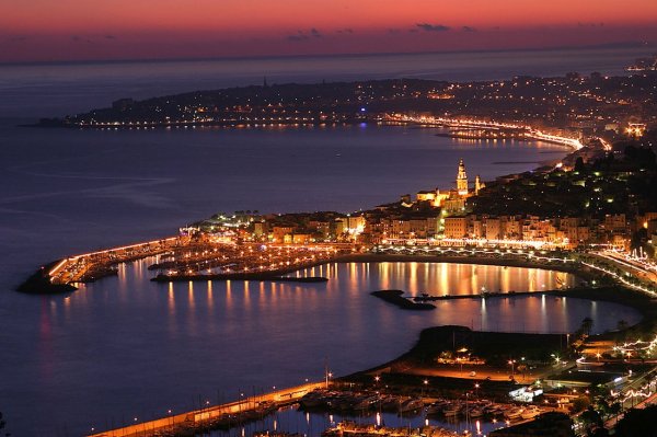 Menton, a „citromligetek hazája” az olasz határ közelében épült, egy védett kis öbölben. Hegyi teraszok ölelésében, citrom- és narancsültetvények között védett helyen fekszik, ennél fogva a partszakasz legmelegebb üdülőhelye.